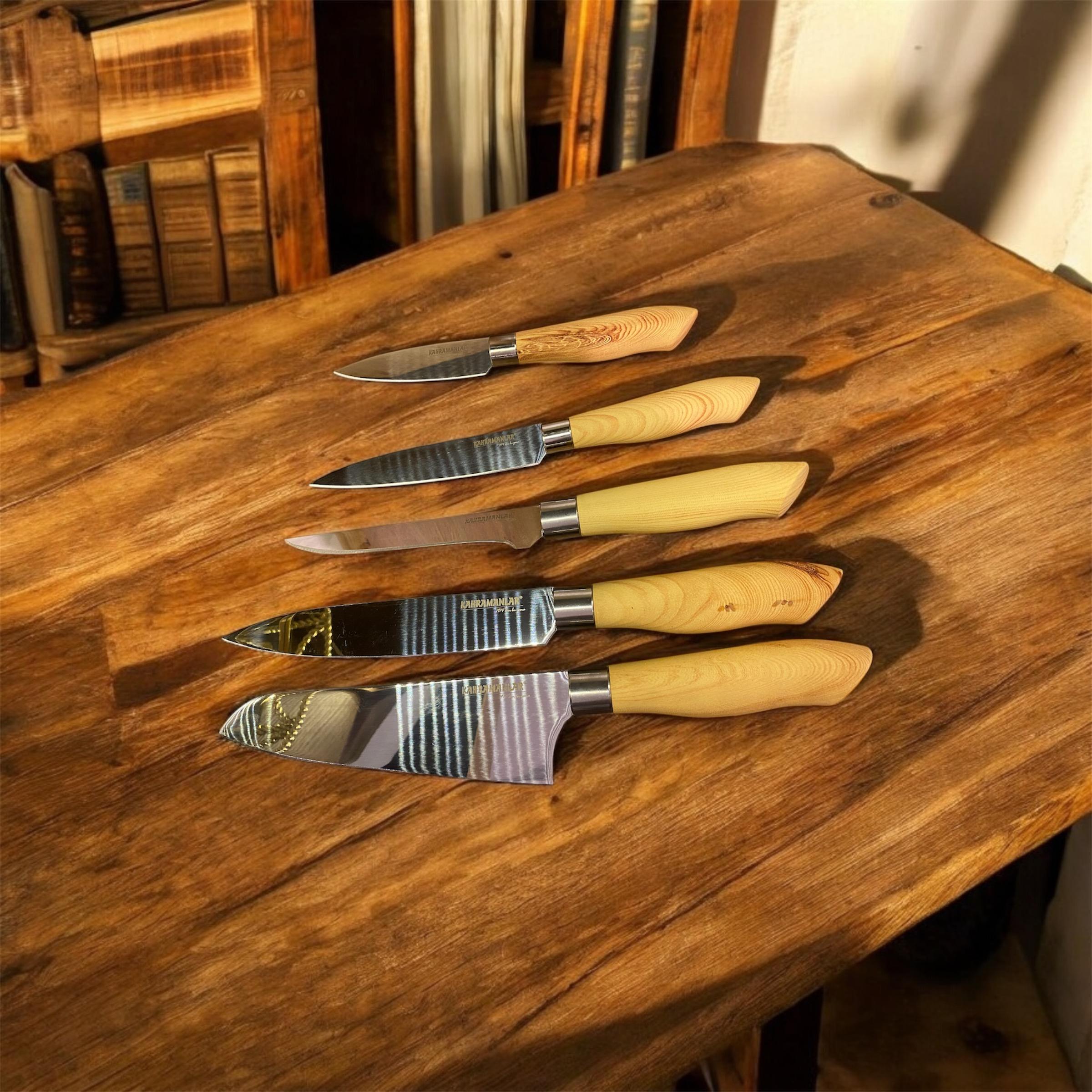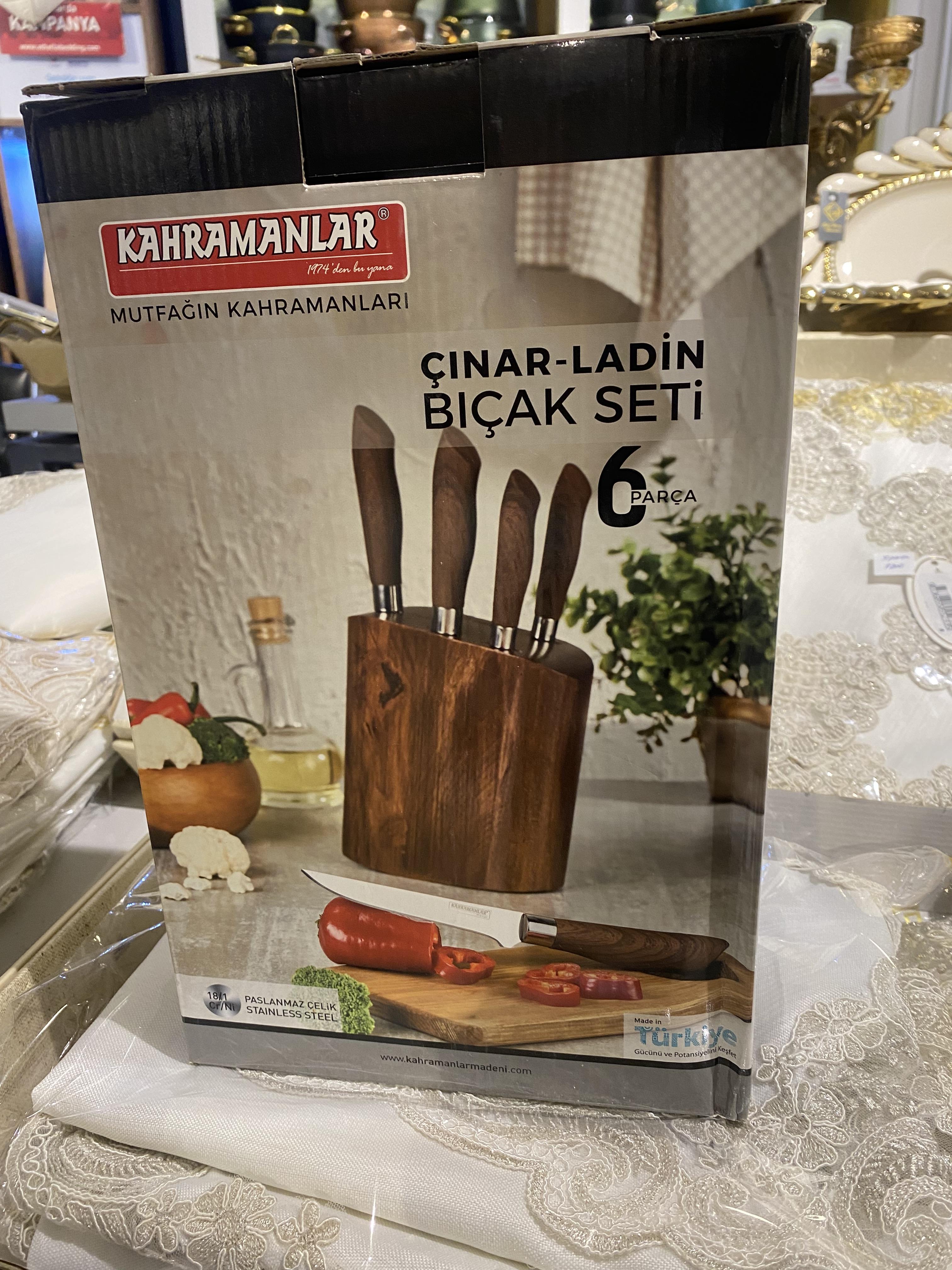Ürünümüz Kahramanlar marka olup iki yıl garantilidir ahşap standı ile birlikte gönderilecektir altı parçadan imal olup kesin de kararmaz bıçakların körlenmez.