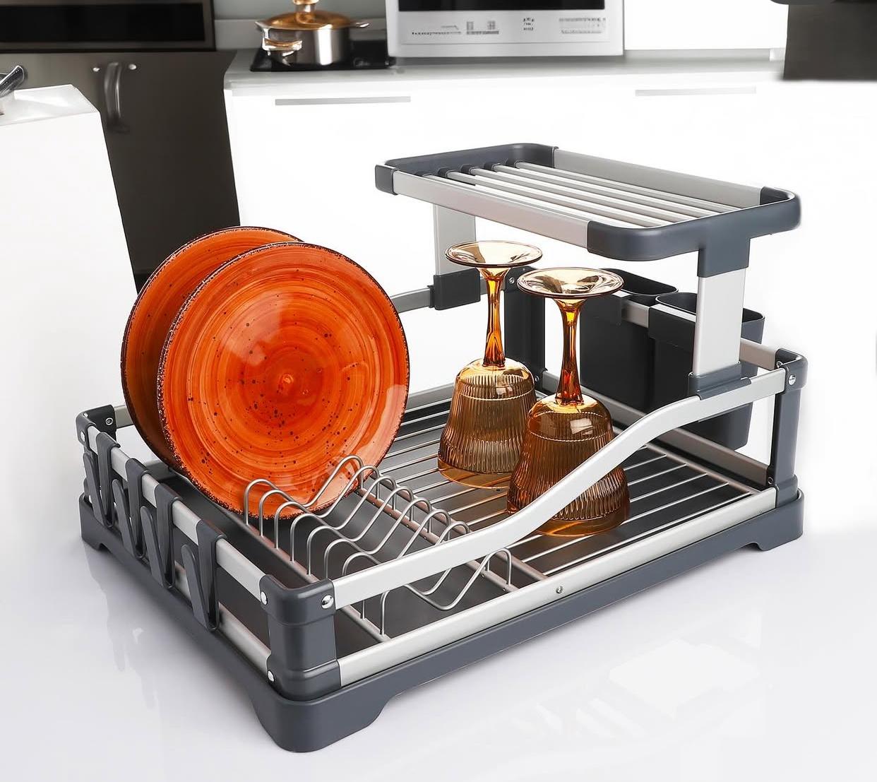 - Katlı Tasarım: Çift katmanlı yapısı sayesinde daha fazla tabak ve mutfak eşyası yerleştirebilir, alan tasarrufu sağlar.